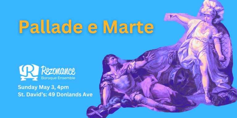 In this rare revival, Rezonance Baroque Ensemble presents a short, unstaged  opera by Italian composer Maria Margherita Grimani (1680 – c.1720). Grimani was an early operatic trailblazer, but her music was long overlooked by music history. This short work was composed for the name day of Emperor Charles VI, in Vienna. Pallas Athena (Vania Chan) and Mars (Andrea Ludwig) take turns praising the emperor. Pallas, radiant and resolute, stands in poised contrast to the impetuous Mars, their musical dialogue crackling with both rivalry and revelation.